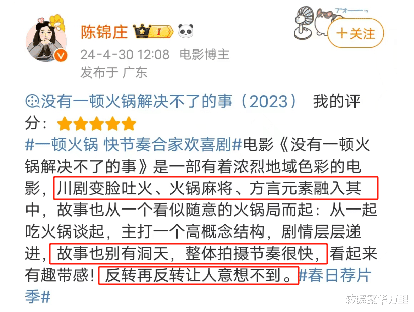 搭配着暖锅、川剧和麻将所有食用,这方言简直越听越巴适,看完电影我皆念念好勤学一学了。