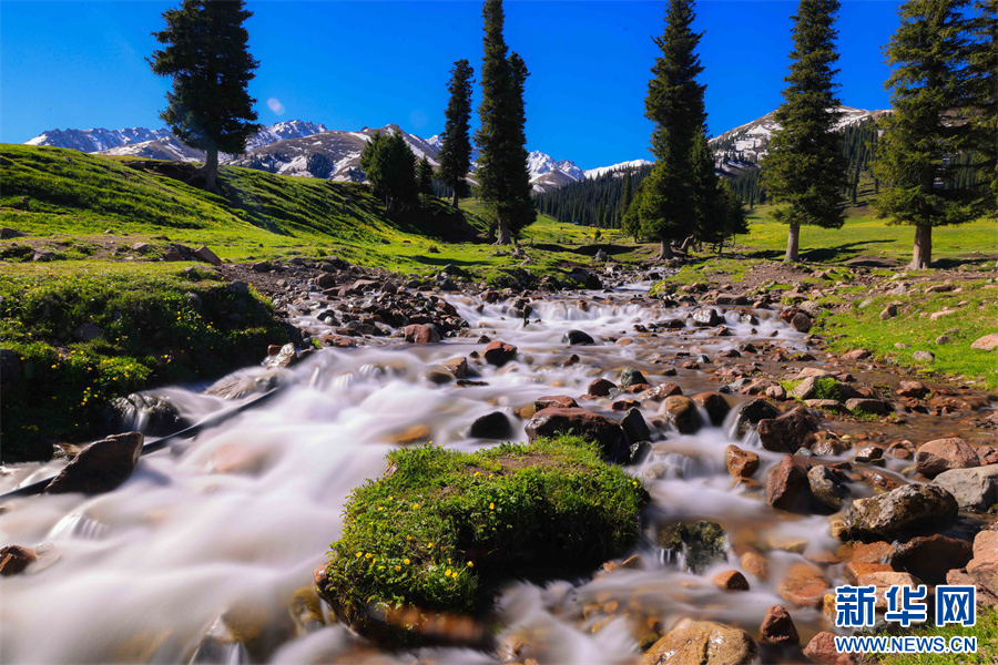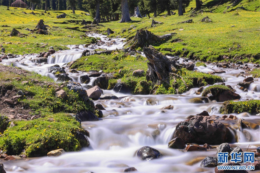初夏,新疆新源县那拉提空中草原,绿草茵茵,黄色、白色、紫色等各色小花点缀其中,好意思不堪收。在空中草原,有一股由天山雪水溶解酿成的明白小溪,沿着草原和松林中穿行而下。在溪水的滋养下,小溪旁的野花闹热滋长,在相机慢门的拍摄下,流动的溪水或如潸潸般缥缈,或如丝绸般顺滑,与岸边花朵逸趣横生,这些时局或宁静唯好意思,让东谈主如痴似醉,或轰动东谈主心,豪阔冲击力,犹如瑶池,田地绵长,妙不成言,好意思得让东谈主乐不思蜀。