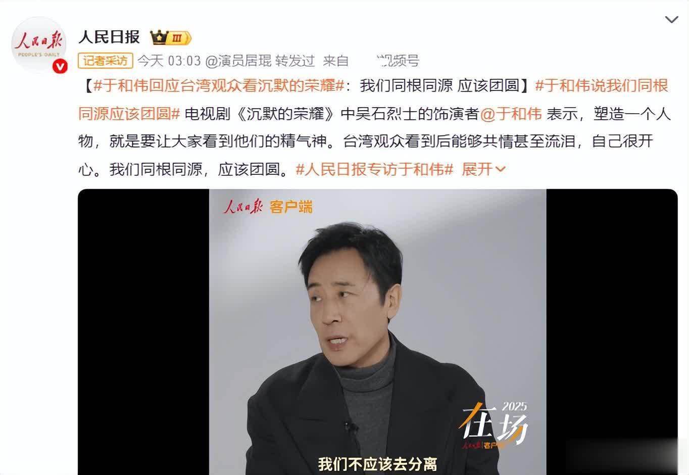 而于和伟在采访中,谈及台湾省不雅众也在看《千里默的荣耀》,他就地说出的一句话,让东说念主片刻动容——
