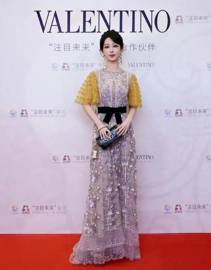 近日,杨紫出席华伦天奴行径,压轴走红毯的她身着2026早春系列口角拼色礼裙。玄色毛绒讳饰上衣搭配米白色高腰长裙,利落剪裁勾画出优胜比例,领口隐形蝴蝶结避让巧念念。她手持品牌经典黑金手袋,搭配抽象首饰,半扎高颅顶盘发搭配碎发修饰,清透裸粉妆容突显亮堂见地,冷白皮在镜头下自带柔光滤镜,宛如从古典油画中走出的贵族令嫒。