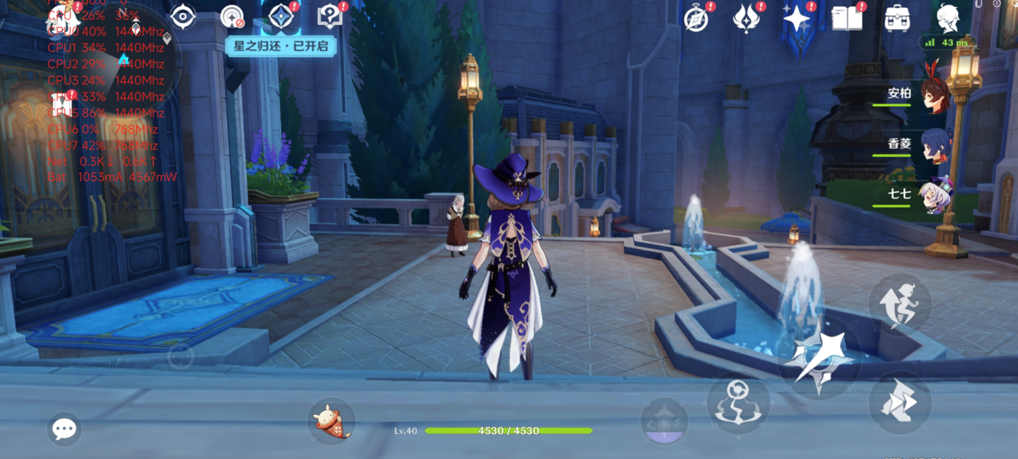 然后,小编用性能条款更高的《原神》来进行测试。测试时游戏画质齐拉到最高,然后在游戏中枫丹廷区域进行跑图 20 分钟。