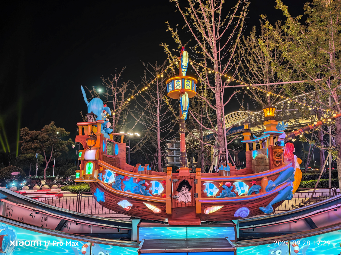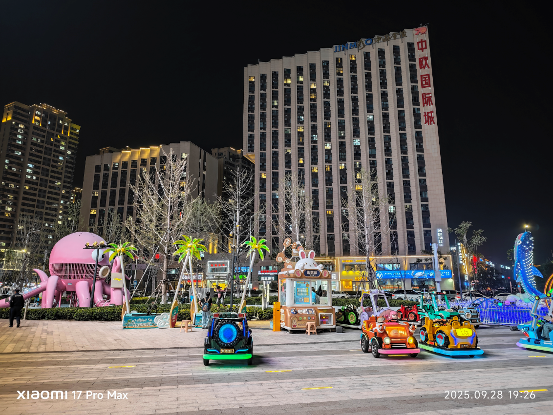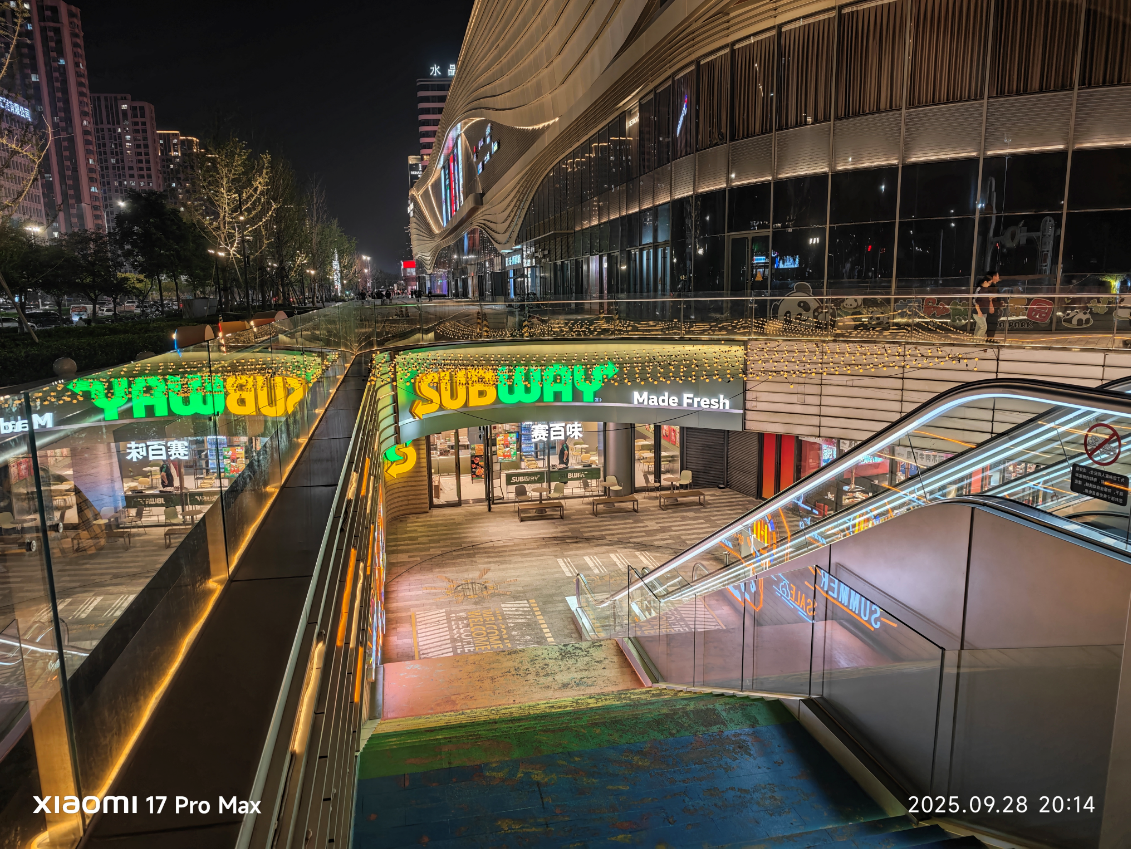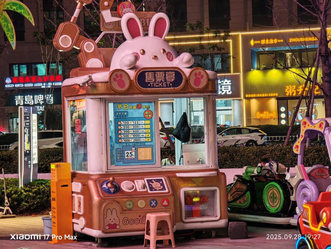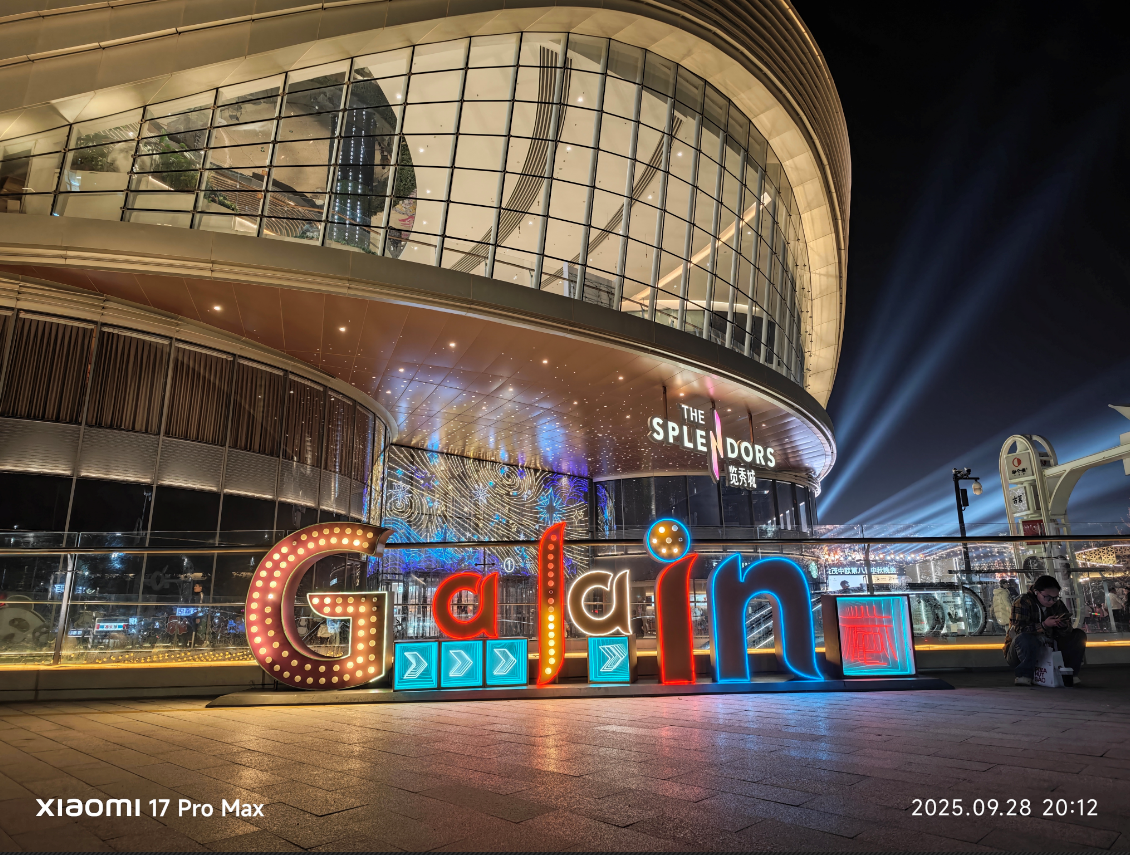 再看底下这张,小米 17 Pro Max 要领模式下直出的相片,画面的光感以致比东谈主眼所见愈加亮堂,复杂的光源下,白平衡放胆也十分精确,霓虹灯条莫得过曝,画面澄澈皑皑。