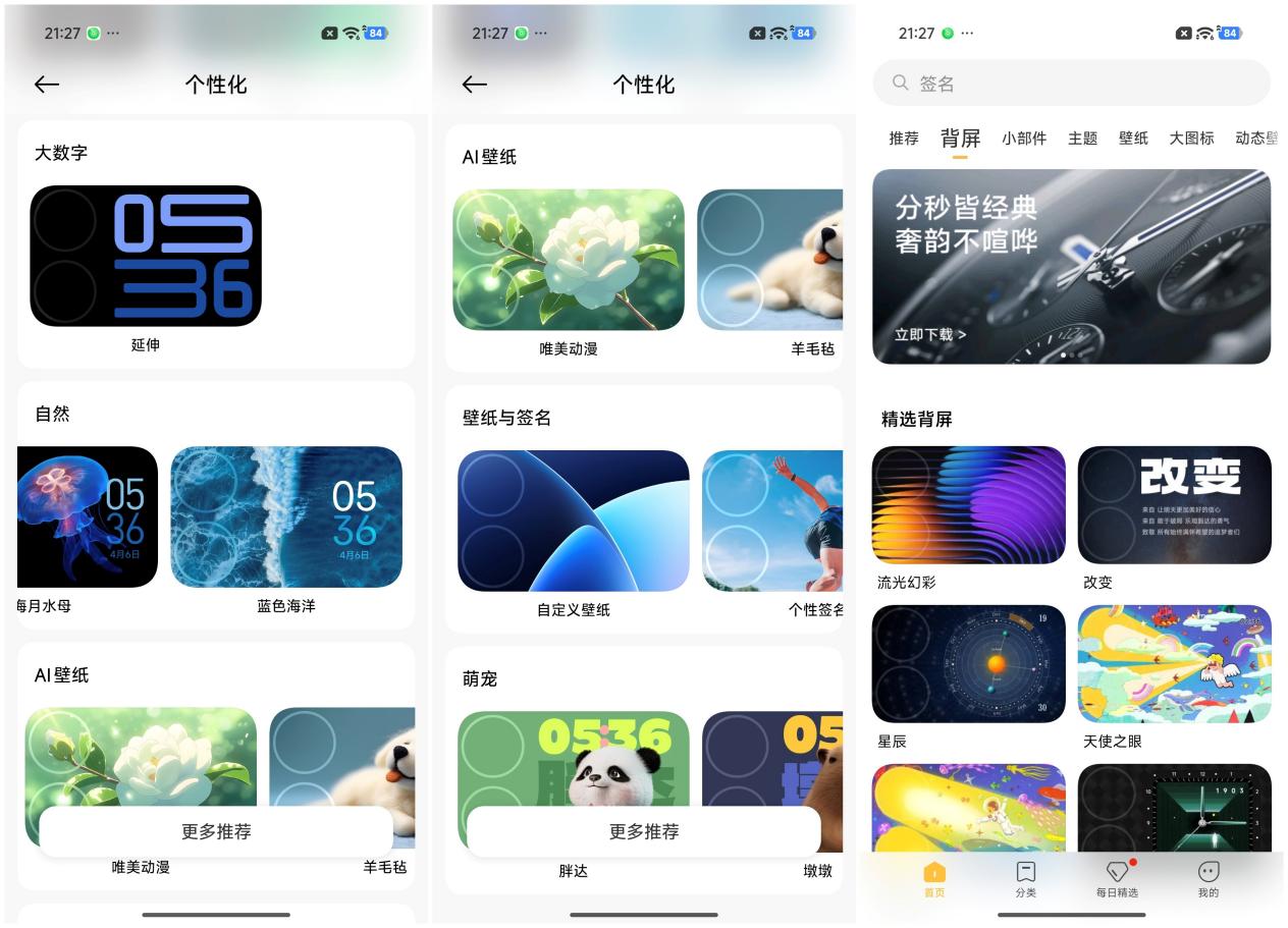 比如它维持个性壁纸,系统内提供了丰富的壁纸选项,有当然作风的,比如蝴蝶或者锦鲤,还有艺术类型的,比如涡核机械的抽象几何、畅通记步的健康可视化、时间光谱、幽谷镜、猫抓板等等,无边个性壁纸可以带来不同的科幻感、秘籍感、调理感。