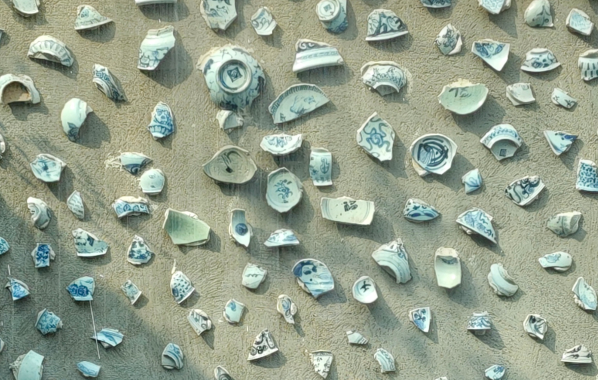 放大后,瓷器碎屑的旯旮和墙面的细节齐愈加澄澈和丰富。