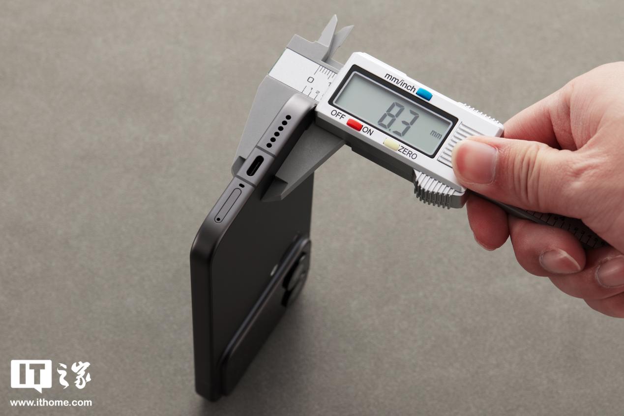 字据官方信息,小米 17 Pro 机身长和宽永诀为 151.08×71.8mm,IT之家测得机身厚度为 8.3mm(官方信息为 8mm)。