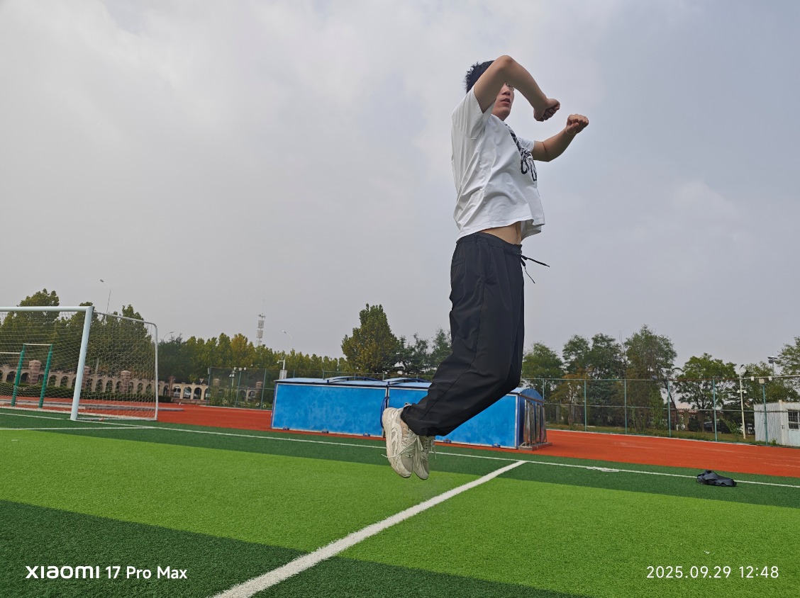小米 17 Pro Max 还领有出色的抓拍才气,开启万物追焦和畅通抓拍功能,拍摄小编快速跳动的过程,可以看到画面少量齐不糊,细节澄澈,好像这一刻小编就是静止在空中的一样。