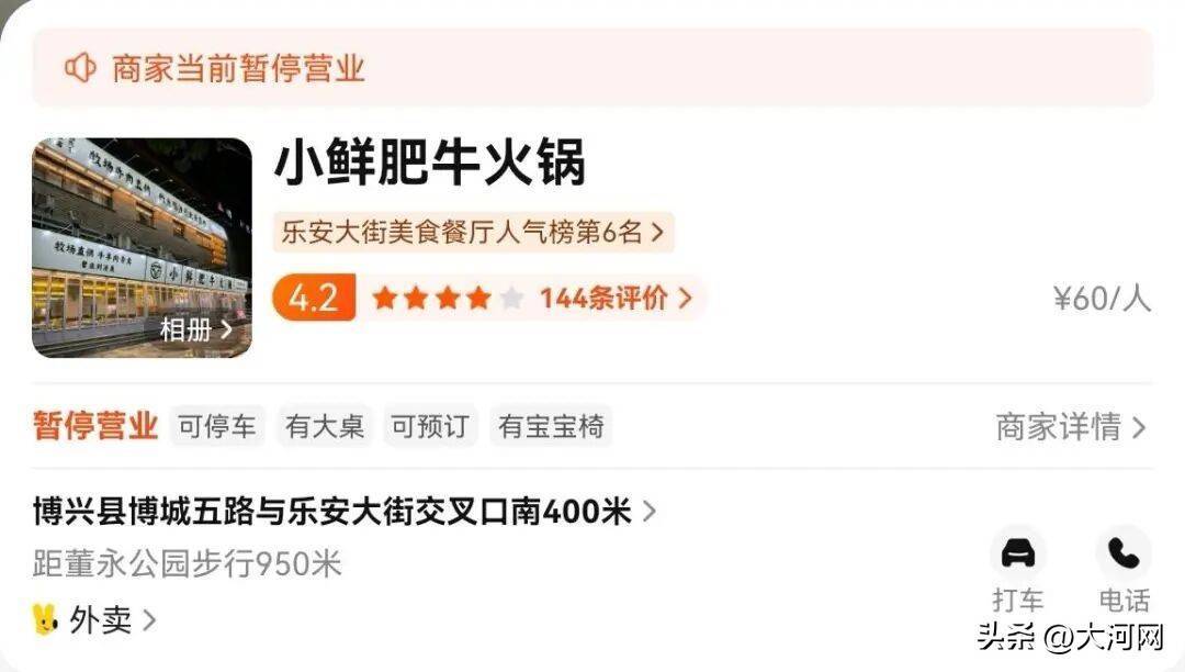 23日上昼,记者屡次拨打博兴县小鲜肥牛暖锅电话,均未能接通。好意思团APP上知道,商家现时暂停贸易。